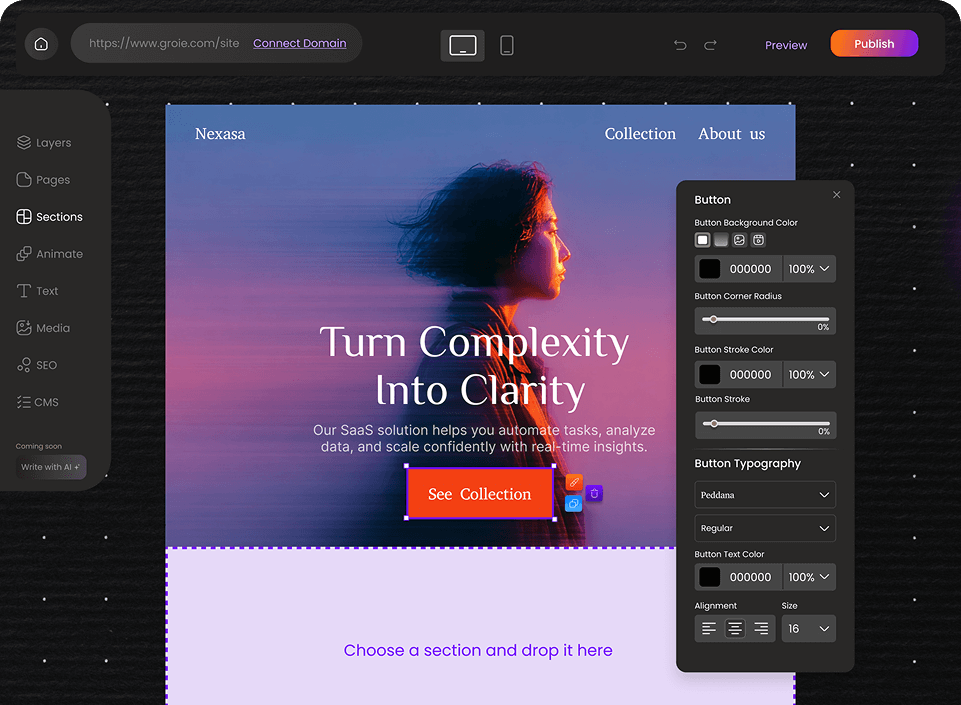 Groie is the first website builder that thinks like a marketer, designs like a creator, and ranks like an  SEO pro