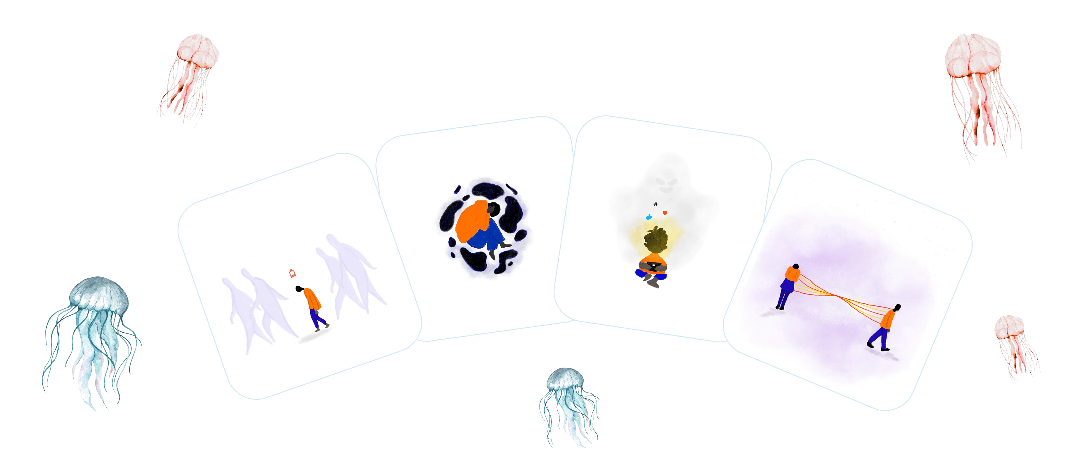 MySafeTherapy's website is hand-illustrated, end to end. Not a single royalty-free image, not a stock photo, not a generic mental health stock vector. Every scene, every character, every background, every texture was drawn in-house.